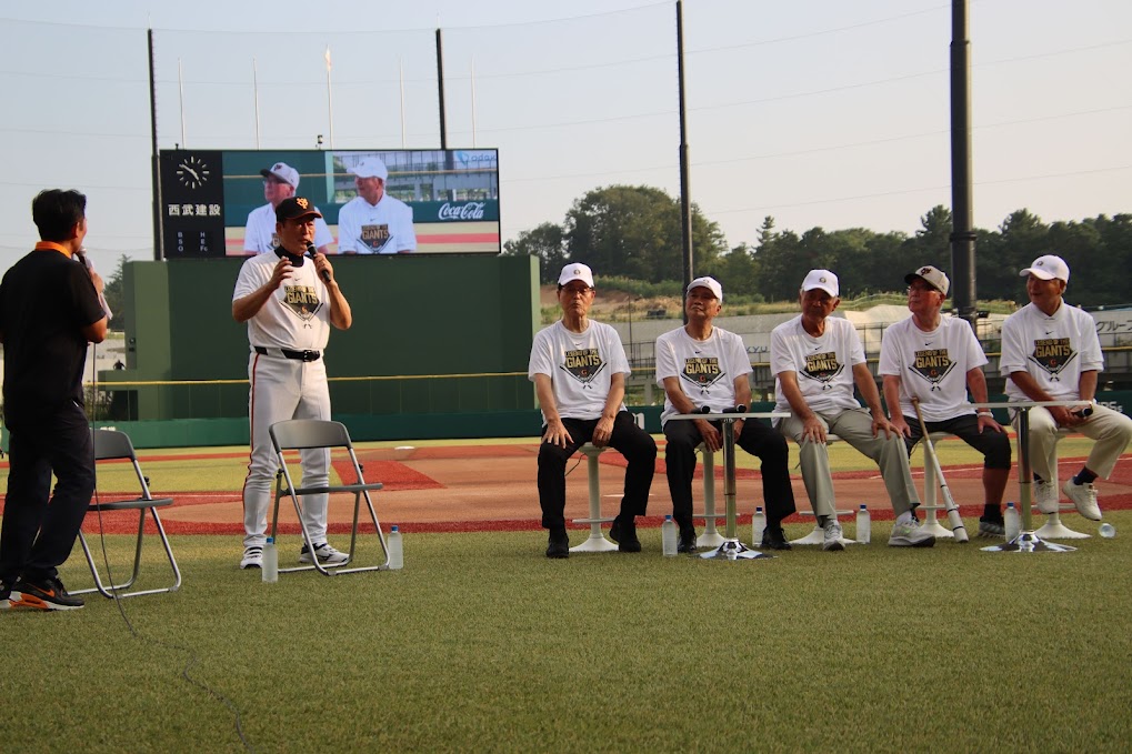 試合前にはレジェンドOBによる豪華トークショーを開催。栄光のV9時代(1965~73年)に活躍した末次利光さん・上田武司さん・吉田孝司さん・所憲佐さん・原田治明さんの5名に、巨人軍OB会長でもある中畑清さんが特別司会に加わった。