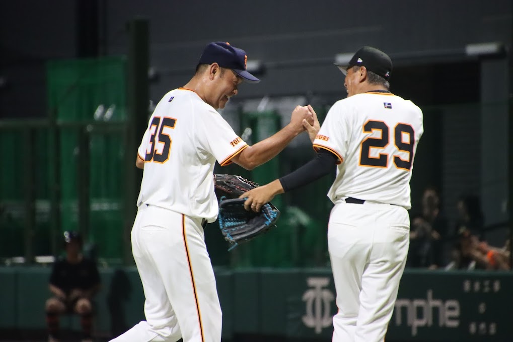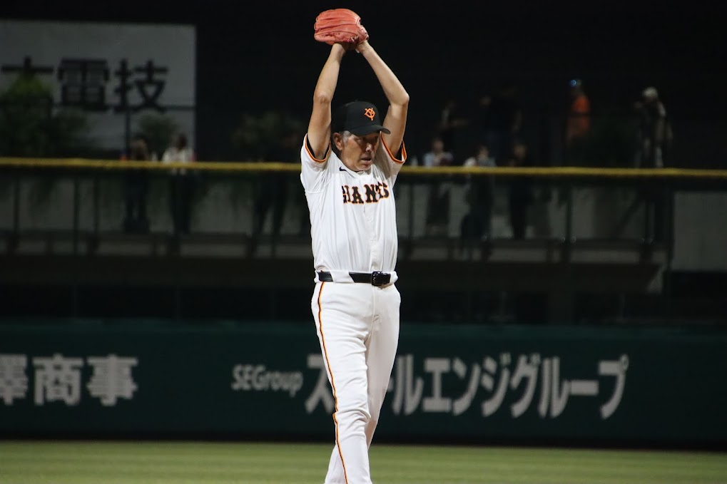 中盤以降は投手陣が主役に。4回以降はお互いに継投での無失点リレーでスコアボードに0を並べていく。巨人軍OBは定岡さんに角盈男さんと鹿取義隆さんの同級生トリオ、さらに前田幸長さんがマウンドで躍動した。