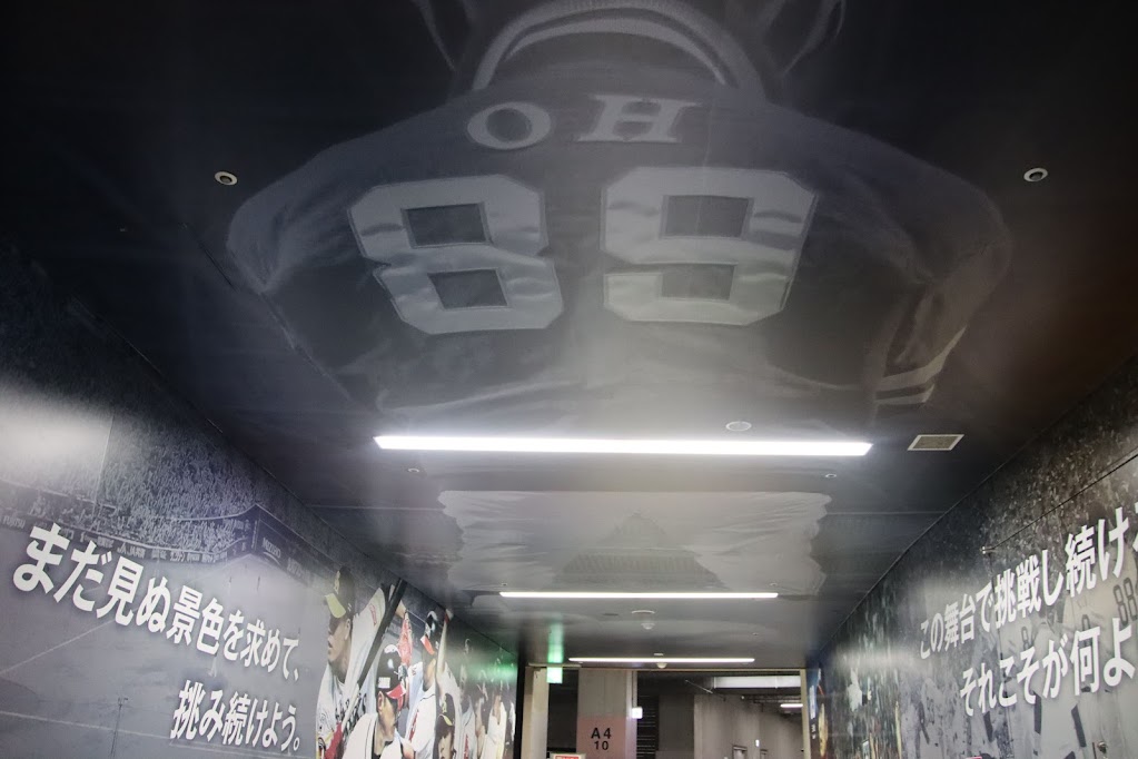 そして城島CBOが最も想いを込めたところがある。それは天井に広がる王会長の背中。背番号「89」を身に着けた写真が大きく掲載され、今も変わらないオーラが通路を常に包んでいる。