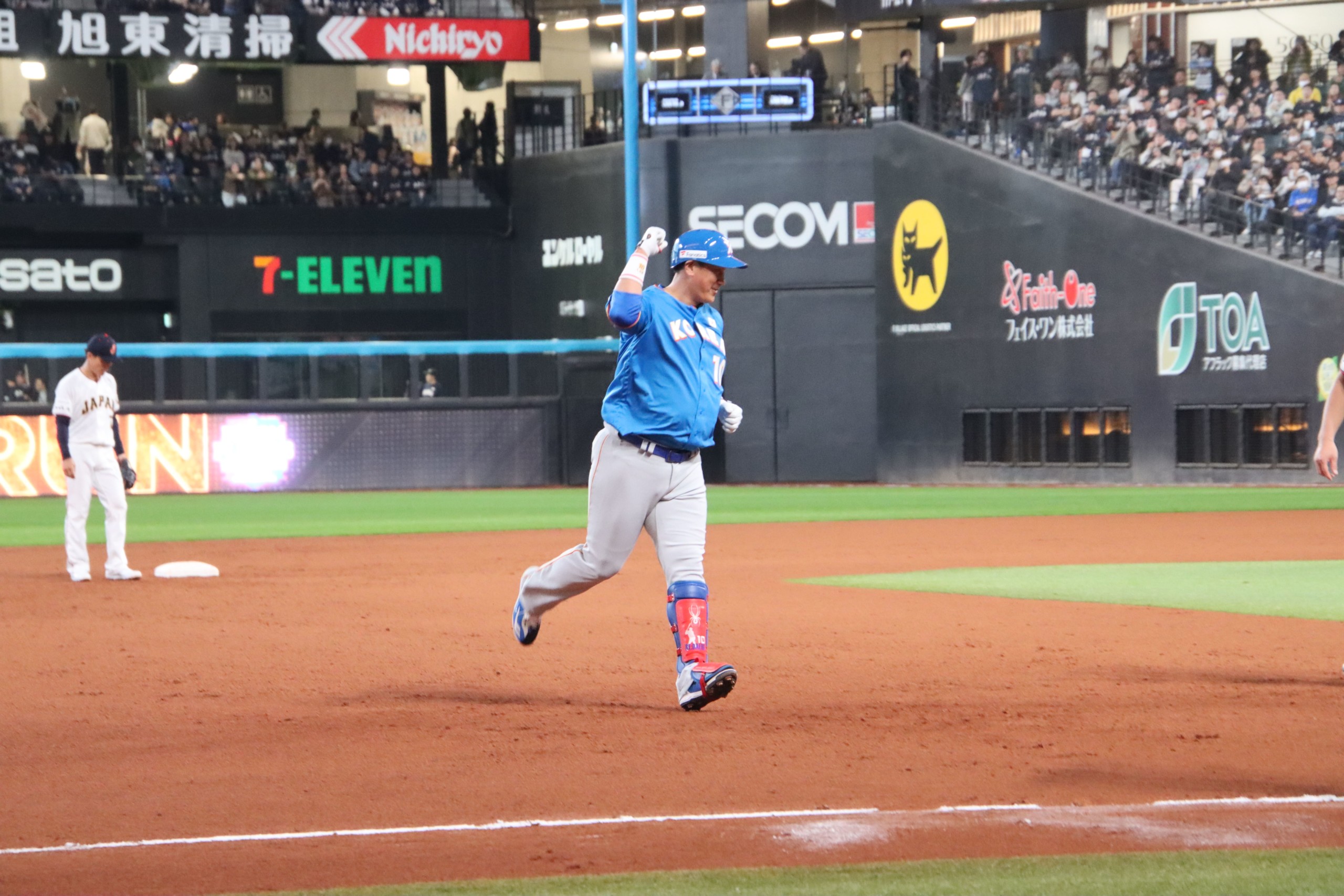 一方、韓国の4番も黙ってはいなかった。6回表、李大浩さんがソフトバンク時代の同僚、攝津正さんから左翼への本塁打。両国の4番がアーチの競演でスタンドの歓声が一層大きくなった。