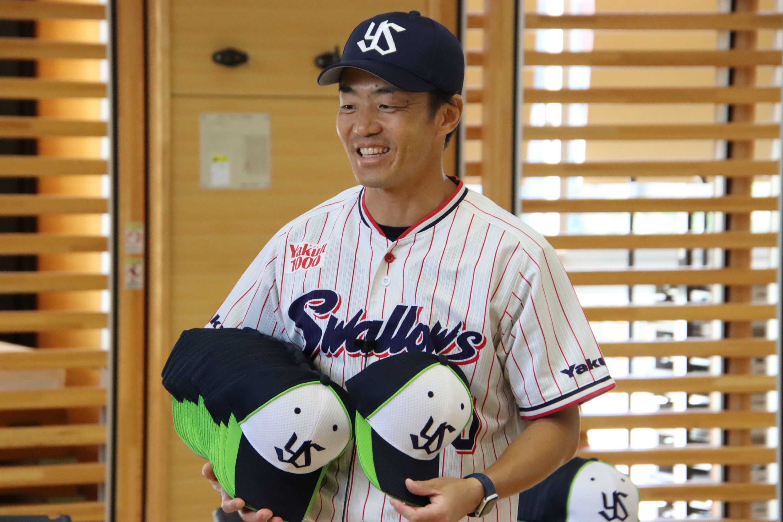 スワローズからは選手OBで現在は球団広報を担当している三輪正義さんが担当した。三輪さんは、08年から19年までの12年間プレー。15年には87試合に出場しチームのリーグ優勝に貢献、日本シリーズの舞台にも立った。