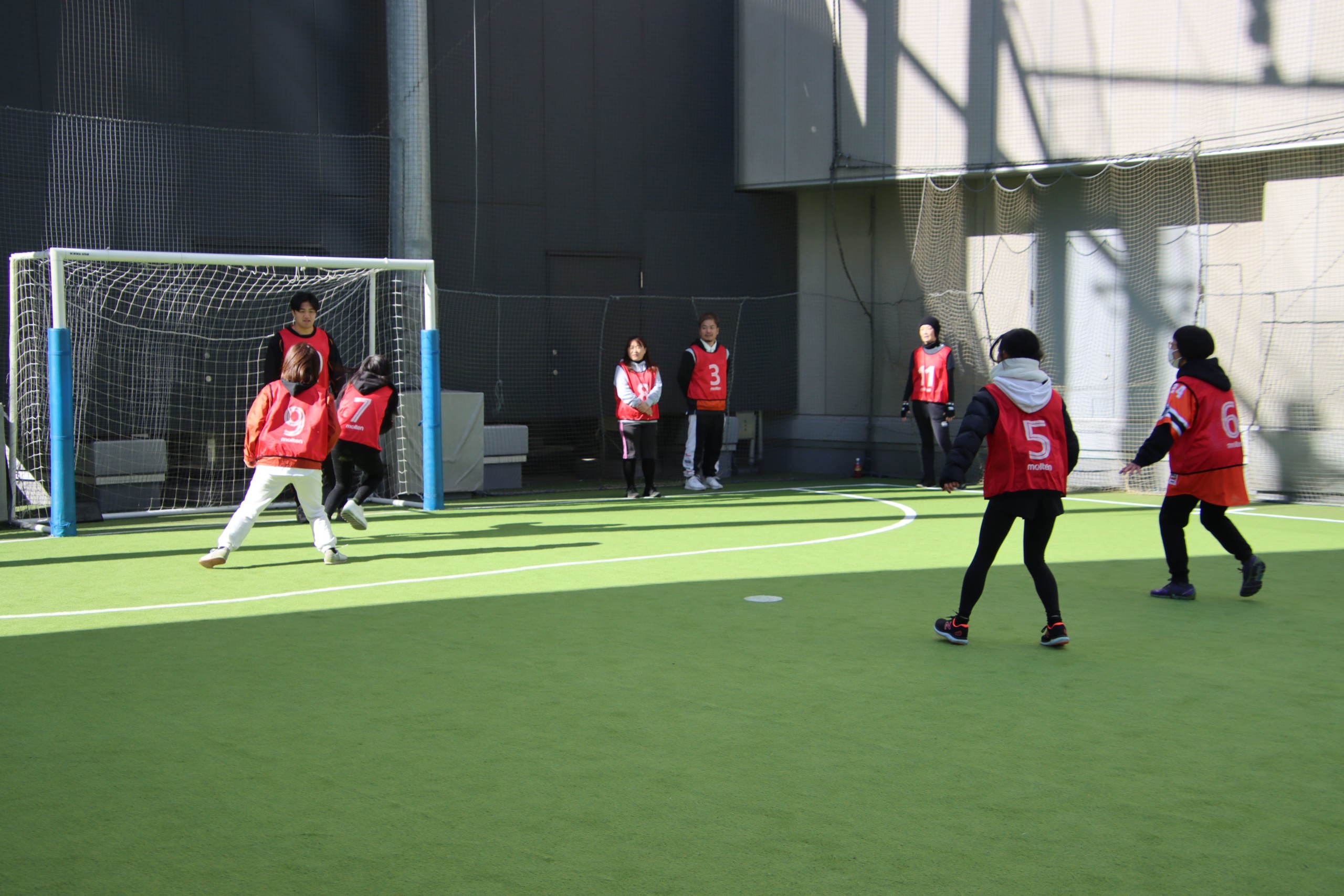 ボール持ってる人は動けないルールとしており、相手の動きを見つつ誰にパスを回せばいいかを瞬時に判断する必要があり、早速「体より頭を使った」という声が挙がった。