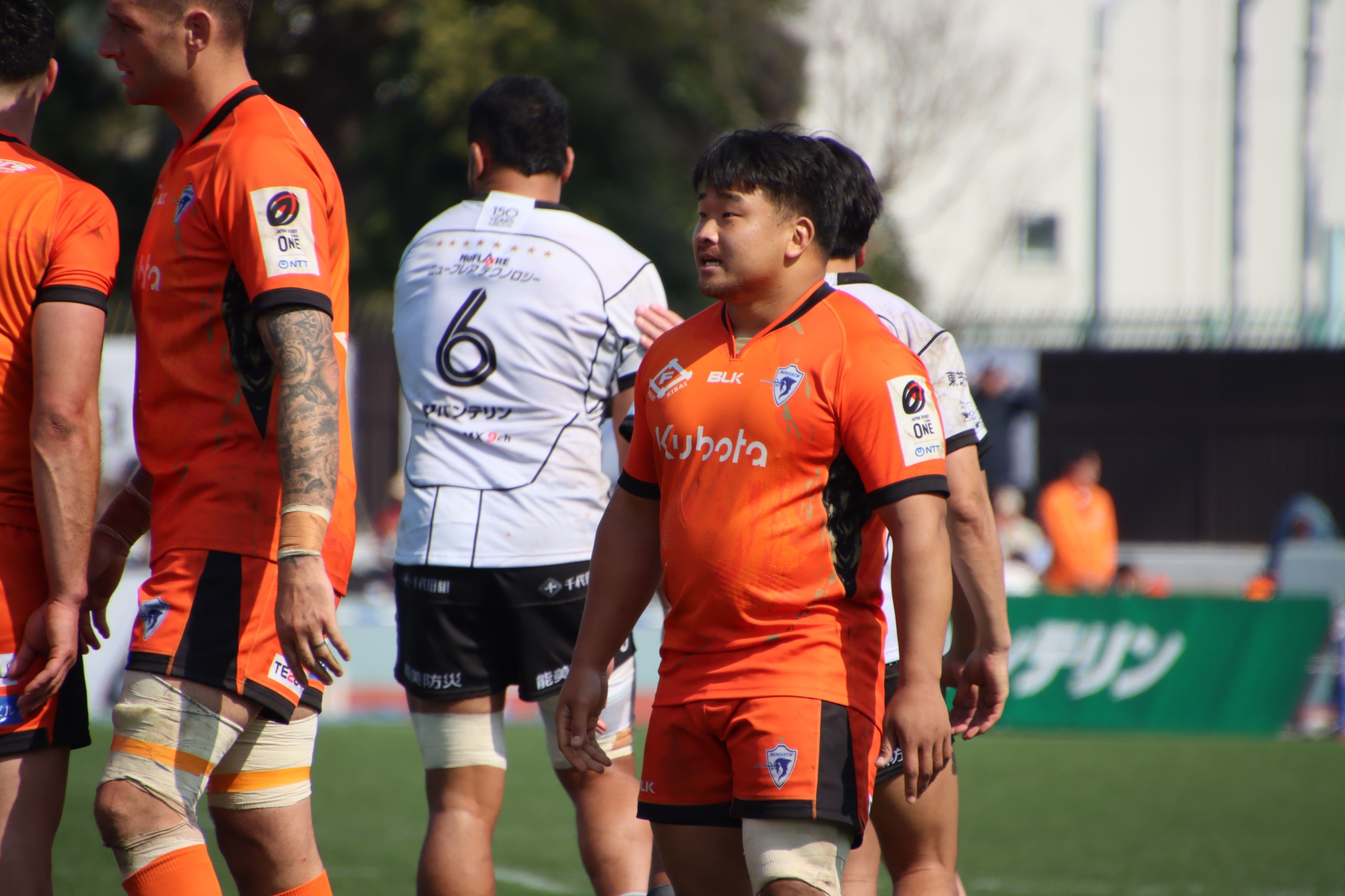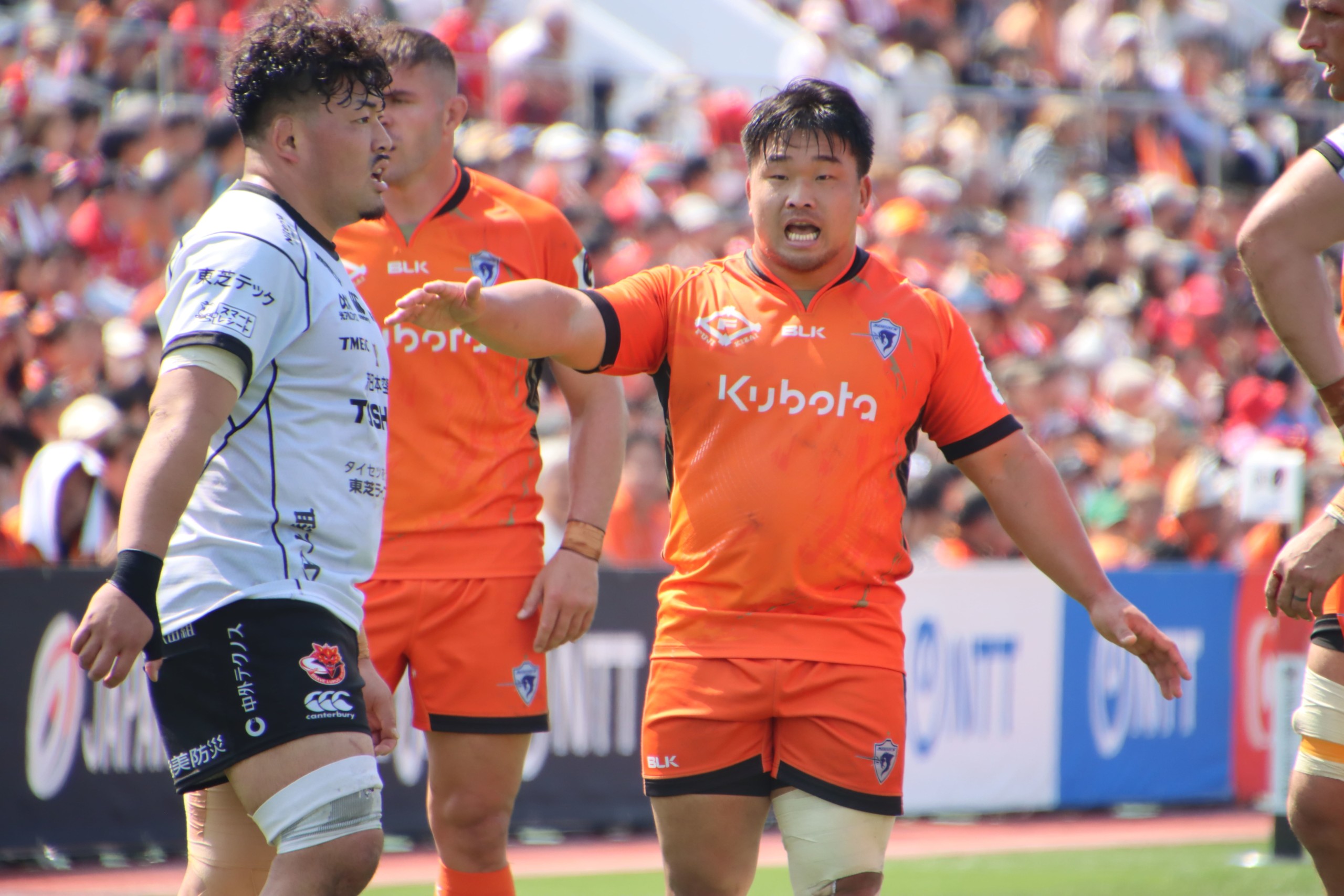 この試合も1番で先発したのがPR紙森陽太。スピアーズが誇る強力フォワード陣の一角として、チームに安定感をもたらす存在として輝きを放っている。